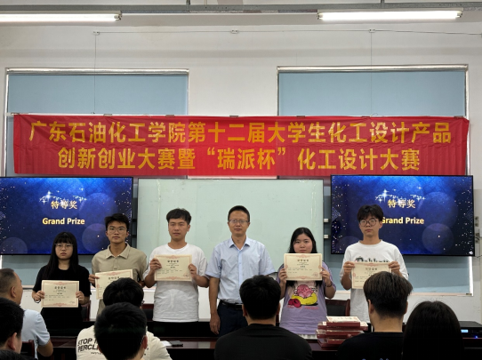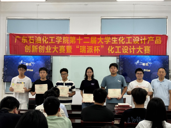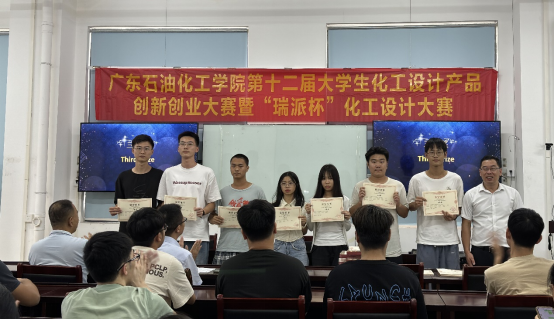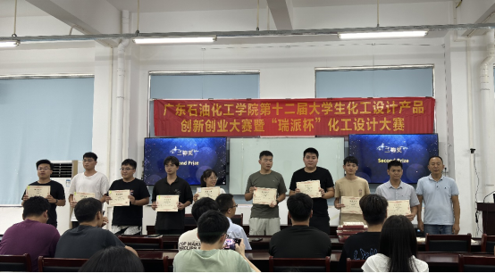 9月11日,广东石油化工学院第十二届“瑞派杯”化工设计大赛颁奖典礼在化工楼C104举行,化学工程学院院长余长林教授、党委副书记纪玉刚、《化工设计》课程负责人陈辉教授出席会议,并为获奖代表颁发荣誉证书。