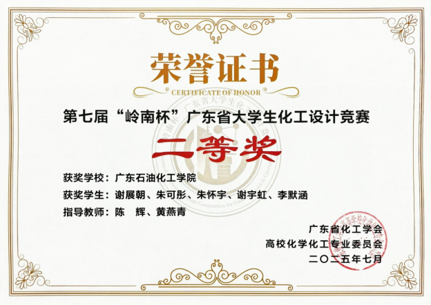 近日,第七届“岭南杯”广东省大学生化工设计竞赛圆满落幕,经过设计文档质量、现代设计方法应用、工程图纸质量的网评初审,PPT汇报展示、答辩成绩的激烈角逐,由陈辉教授、黄燕青老师指导的五个团队获特等奖1项、二等奖4项。