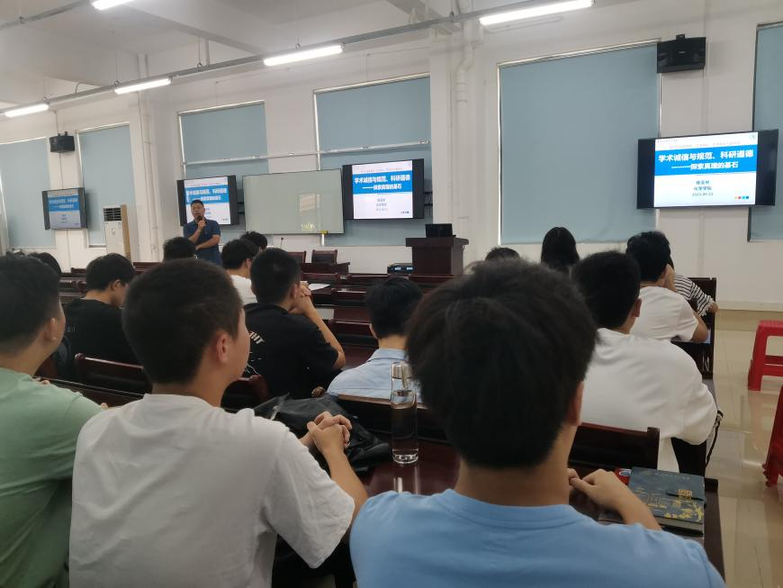 陈亚举为研究生新生作“科研道德、学术诚信、学术规范”专题教育讲座,带领研究生学习学术不端行为的类型及相关政策,分享多个网络报道的典型违反学术规范的案例。他强调,遵守学术道德与规范是科学工作者的基本操守和道德底线,要时刻把科学道德与学术规范放在心中,严守规范底线。