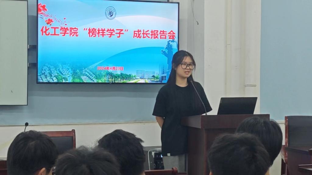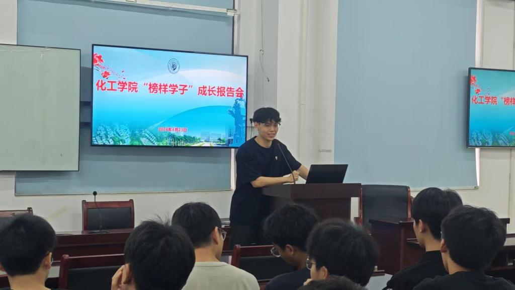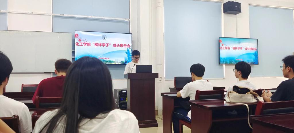报告会上,榜样学子们结合自身学习经历,向同学们分享了个人的学习方法、科研心得、备考经验等经历和感悟,他们用真挚的语言、生动的事例,展现了自己不断努力、克服困难的过程,以及取得的优异成绩,用自己的实际行动诠释了“崇德、博学、求实、创新”的校训精神,展现了化学工程学院学子的风采。他们纷纷寄语学弟学妹们,要充分利用身边的学习资源,开拓创新,勇敢拼搏,培养和锻炼自己的综合能力。