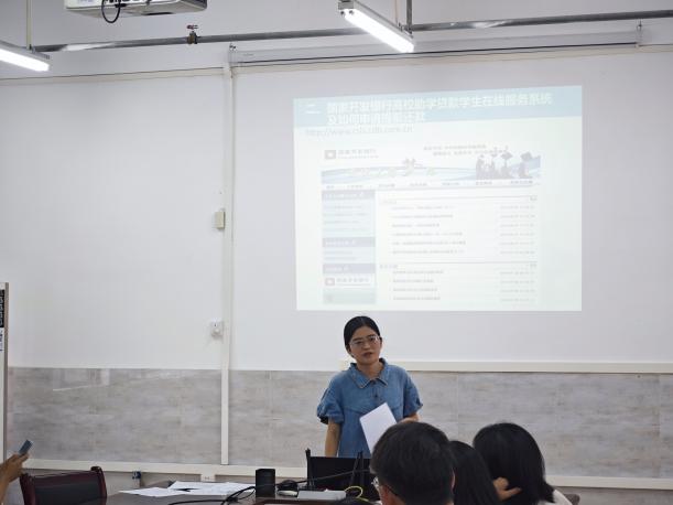会上,黄丹颖老师系统讲解了国家开发银行还款流程,普及了还款方式、征信知识、逾期罚息、毕业确认表填写注意事项等内容,引导同学们按时还款,如期履约,珍爱信用记录,踏踏实实做一名诚信立身的知识青年。