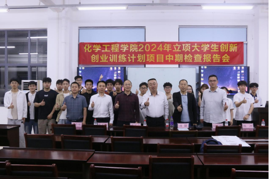 4月16日晚,化学工程学院在化工楼C104举行了2024年立项大学生创新创业训练计划项目中期检查报告会。化工学院党委副书记纪玉刚、副院长曾兴业、双创学院副院长孙健、能工系主任张尤华、石油化工系主任杨冲、化工实验与实训中心副主任林存辉及各项目成员参加本次活动。