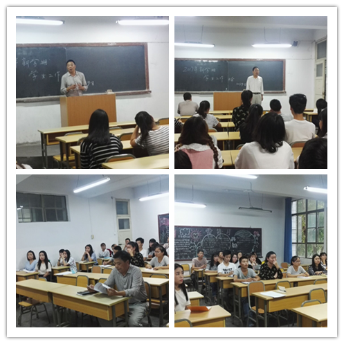 首先马老师针对新学期学生管理问题,提出了每日考勤、周日晚点名及晚上11:00宿舍舍长报告制,加强学生宿舍安全卫生监督,实施奖罚措施;在安全问题方面,提出了学生人身安全及政治思想安全,欲组织学生会干部统一学习习近平总书记7月26日重要讲话精神和习近平总书记给第三届“互联网+”大学生创新创业大赛的大学生的回信。第三,对这学期的综合测评、补考工作进行了安排。第四,提出暑期社会实践、建档立卡等学生资助工作的重要性。最后马老师给大家分享了我院优秀学生干部的优秀事迹,希望大家从中感悟到作为学生干部要完善自身各个方面,将理论与实践结合,做到各方面均衡发展的重要性。