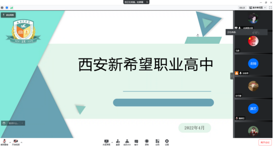 西安新希望职业高中校办人事负责人、安康学院2020届校友贺莉娟展示了宿舍、教学楼、食堂、操场等校园环境的图片,同时对单位福利、团建等人文关怀做简单介绍。最后重点介绍了本次的三个招聘岗位——专业课教师、班主任、促学干事,对其岗位职能、任职资格、晋升路径、薪资待遇等等做了具体讲解。