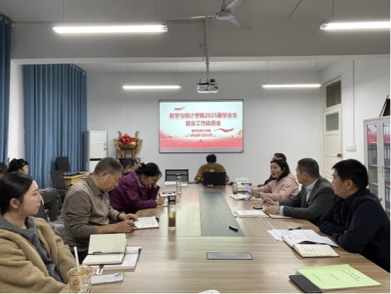 为深入贯彻国家对高校毕业生就业工作的部署要求,积极应对当前就业形势,全力促进2025届毕业生高质量就业,数学与统计学院于2024年10月30日在2207会议室召开了2025届毕业生就业工作动员会。学院领导、系主任、专业教师以及辅导员参加会议,会议由党总支书记储玖琳主持。