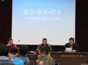 会后,系主任赵教授做了总结发言并对学生提出6条建议与要求:养成终身学习习惯、学会思考、重视数学思想、学会推广、当好数学教师要学好哲学、充分利用科学网进行学习和写作。  两个多小时的报告生动翔实,富于哲理的说教、通俗易懂的授课方式和严谨的教学态度使现场师生深受启发,也更加明确了学习和研究数学科学的目的和方向;她对数学的热爱之情也时刻感染着大家,让大家感悟到数学的魅力。 |