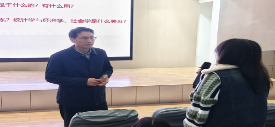赵波结合自身丰富的统计实践经验,从“如何认识统计和统计学、政府统计工作、政府统计面临的新形势和任务、政府统计机构对人才的需求”四个部分为师生作了精彩报告。本次报告立足于中国式现代化对统计工作的时代要求,从认识论与实践层面系统阐述了统计现代化改革对人才培养提出的深刻需求。报告指出,统计人才必须具备多学科交叉的知识结构,面对构建现代化统计调查体系的战略任务,市县统计机构人才不仅需要掌握扎实的统计理论、数据处理技能及经济学、社会学理论基础,更强调其应具备透过数据洞察本质的分析研究能力、服务于宏观决策的写作与沟通能力,以及求真务实的政治品格与深厚的人文素养。赵波强调,统计人才培养的核心,在于塑造能够适应复杂对象分析、支撑科学决策、并在统计监督中维护数据真实性的复合型专业人才,这直接关系到统计工作能否有效服务于国家治理体系与治理能力现代化。