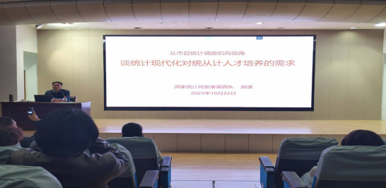 2025年10月22日,数学与统计学院特邀国家统计局安康调查队党组书记、队长赵波为统计系师生作了题为“从市县统计调查机构视角谈统计现代化对统计人才培养的需求”的学术报告。报告会由数学与统计学院副院长徐龙华主持。