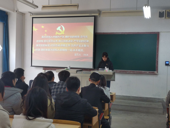 为增强党员政治意识,坚定理想信念,进一步增强新发展党员的责任感和使命感,3月11日上午,数学与统计学院学生党支部在1201举行新党员宣誓仪式暨入党第一课,党总支书记郭全寿和学生党支部全体党员参加了会议,会议由学生党支部书记董婷瑜主持。