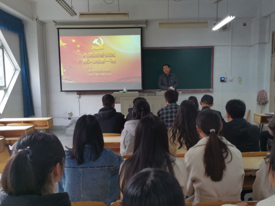 宣誓仪式结束后,郭全寿向新党员表示祝贺,并向新党员讲入党后的第一节党课。郭全寿带领同学们回顾了党领导国家经历的站起来、富起来、强起来的历程,号召同学们向党员前辈学习,牢记入党誓词,把入党誓词作为自己终身追求、终身修养和终身实践;随后领学了习近平总书记在党史学习教育动员大会上的讲话,要求学生党员读懂党史,不忘来时路,读好党史,走好脚下路,读透党史,坚定未来路,在学思践悟中为实现“两个一百年”奋斗目标不断努力。