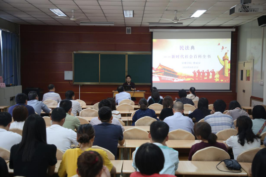 报告会上,党委委员、宣传部长鲁延安首先介绍了民法典编纂的过程和总体结构,其次讲解了民法典的定位、我国民法典的特色和民法典的核心理念,最后通过列举近几年社会中出现的热点话题对民法典进行了更深入的讲解。民法典的颁布和实施与我们的生活息息相关,此次报告会,有利于我院师生深入学习贯彻习近平总书记重要讲话精神,学习好实施好民法典,推动形成符合民法典核心要义和精神内涵的社会共识,为民法典全面有效实施作出积极贡献。