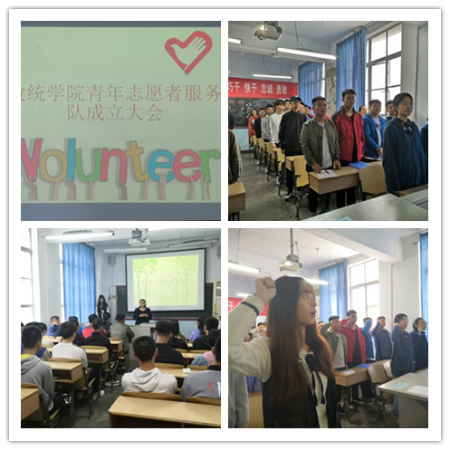 数学与统计学院团总支于2019年10月23日在二号教学楼2202教室开展了青年志愿者服务大队成立大会。本次大会的目的是近一步加强我院社会实践活动的力度,推进志愿服务事业规范化、制度化的进度,壮大我院志愿者服务队伍,更好地弘扬“奉献、友爱、互助、进步”的志愿者精神,全面推进我院的志愿服务事业。参加此次大会的有团总支书记师帅老师,团总支副书记王玥洁,组织委员杜雨杰,宣传委员武荣杰,志愿者代表以及青年志愿者。
