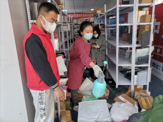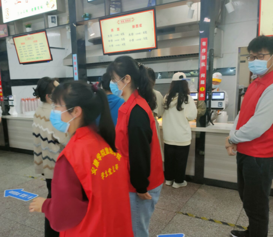 数统学院学生支部党员、发展对象、入党积极分子积极参与学校疫情防控志愿服务,承担了校内快递站督促消杀、江南校区一号食堂和二号食堂就餐秩序引导等工作。
