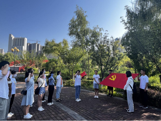 在思忆园,支部党员面向党旗宣誓,以铮铮誓言表达奋斗决心,让入党初心成为成长路上的灯塔。