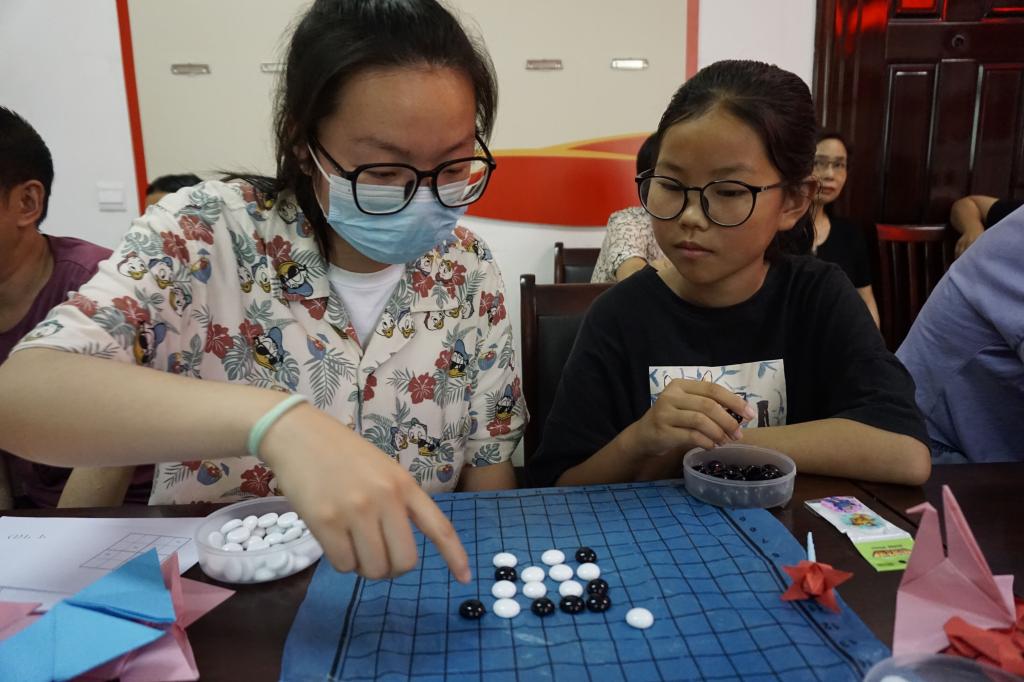 当天下午实践队员们与社区留守儿童相聚在社区活动室,开展“心手相牵快乐成长”“兴趣培养轻松益课”主题活动。学生党员汪敏豪讲述了老党员和自己的入党故事,鼓励小朋友们坚定信念、努力学习。接着开展数独、魔方、华容道等趣味数学游戏,激发他们对数学的兴趣,利用自身专业优势培养小朋友们的数学思维,提高了他们学习数学的积极性。趣味数学游戏结束后,队员们带领小朋友们折纸,并且鼓励他们在爱心、千纸鹤、花朵上写下自己的成长心愿,小朋友们有的写下对父母的思念,有的写下对自己学习成绩的期望,有的写下希望能多参加趣味数学游戏的小愿望... ...随后队员们结合小朋友的成长心愿和他们一对一谈心,鼓励小朋友们乐观生活、好好学习、快乐成长。