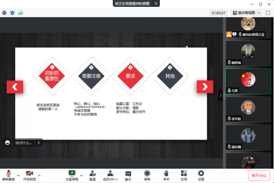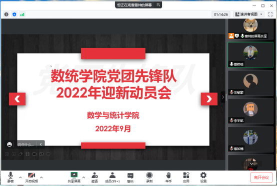 为全力做好迎新志愿服务,数统学院由学生党员、学生干部、入党积极分子、发展对象等百余名学生组成的党团先锋队主动报名参与2022年迎接新生志愿服务, 9月22日晚,我院召开党团先锋队2022年迎新动员线上会议,会议由学生党支部书记董婷瑜主持,新生辅导员、党团先锋队成员参加了会议。