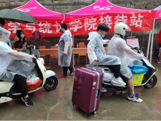 9月20日上午八点,是一个风雨交加的早晨,伴随着大雨,新生入学报到工作也正式开始。来报道的新生首先会由学生会志愿者帮他们拿行李,带领他们来到新生接待站,随之就是将行李帮忙托运至宿舍楼下的行李临时寄存点,在热心的工作人员的带领下,一批批新生顺利到达了注册报道处。按照登记、办理宿舍入住、领取校园卡、交档案、送新生到宿舍的流程,在9月20日至21日期间,除了因疫情防控原因不能返校的个别学生外其他新生均顺利完成了报到。整个迎新工作虽然很紧张,但是每项程序都在有条不紊的进行。工作期间校院两级领导不时来到报名现场了解报到情况,慰问和激励工作人员。