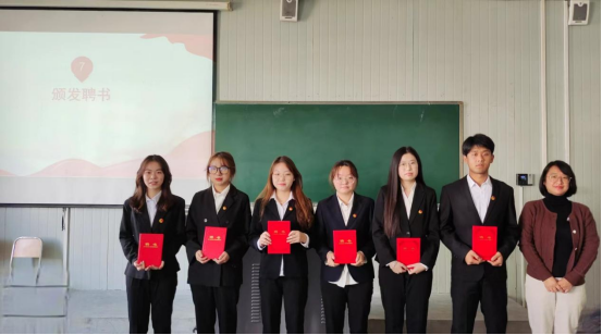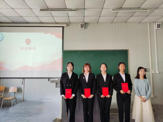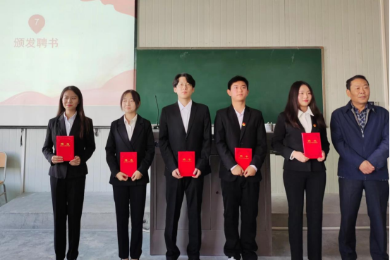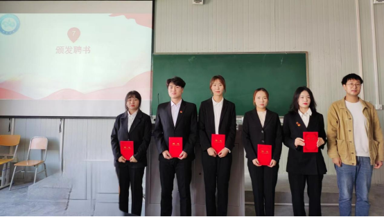 接着,第三十九届团总支学生分会主席团成员惠如楠宣读了《数统学院学生会章程》,实践部负责人王路涛带领全体学生干部宣誓。随后,与会老师向新一届团总支学生分会学生干部颁发了聘书。最后,伴随着郭全寿对新一届团总支学生分会提出四个“好”的寄语,即“思想好”、“工作好”、“学习好”、“进步好”,大会也开始落下了帷幕。