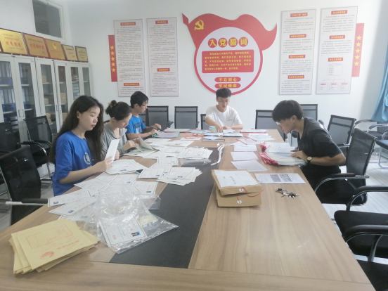 7月5日,学生支部书记董婷瑜、团总支书记刘佩召集十余名志愿者就毕业生离校工作进行分工安排,志愿者分为信息组、领取组、后勤组。对离校手续办理、领取材料流程、委托代领材料核验等程序进行了说明,要求志愿者细心、耐心、热心,按照程序开展工作,热心服务。接着后勤组对毕业生的各项材料进行了分班、分类整理,确保最大限度节省毕业生领取材料的时间。
