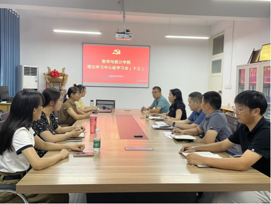 9月4日下午,数学与统计学院理论学习中心组召开政治理论学习会,中心组全体成员参加学习会,会议由党总支书记储玖琳主持。