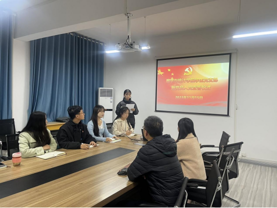 为继承和发扬党的光荣传统和优良作风,提升新发展党员的党性修养,促进先锋模范作用的发挥,11月15日晚上,数学与统计学院学生党支部在江南校区2207会议室举行新党员宣誓仪式,党总支副书记杨高翔和学生党支部全体党员参加了会议,会议由学生党支部组织委员刘佩主持。