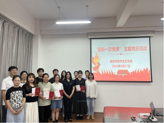 在七一即将来临的重要时刻,数统学院学生党支部开展的“最后一次党课”主题党日活动,不仅是样板党支部建设的生动实践,更是传统文化浸润与现代党性教育的完美融合。通过参观一个场馆、上一次党课、做一次思想汇报、进行一次集体宣誓、赠送一张政治生日贺卡等环节,深化毕业生党员的爱校荣校情怀,不仅是一次思想的洗礼和教育,也是对党员们的激励和鞭策,鼓励他们在今后的学习、工作和生活中,继续发挥党员的先锋模范作用,为党和人民的事业贡献自己的力量。