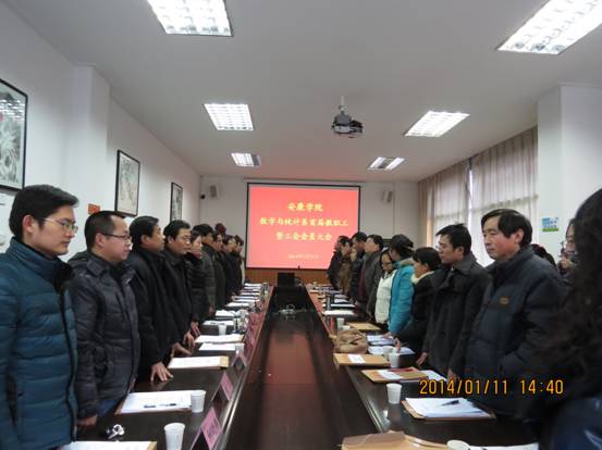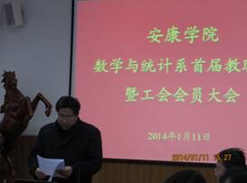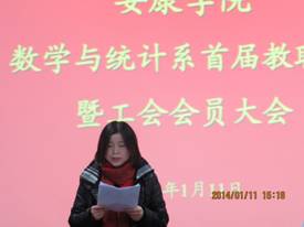 2014年1月11日,数学与统计系首届教职工暨工会会员大会在安康学院第一会议室隆重召开。参加会议的有学校党委委员、副校长向纪明、学校工会专职副主席许宝林、共青团安康学院委员会副书记肖红香及全系教职工共30余人参加了会议。开幕式暨第一次全体会议由执行主席郭全寿主持。