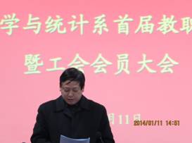 数统系教工党支部书记汪义瑞致开幕词。向校长首先讲话,他强调坚持和完善教职工代表大会制度的重要意义,并预祝大会取得成功。随后学校工会专职副主席许宝林代表学校工会向大会致词,学校团委副书记肖红香代表学校团委在大会上宣读了贺信,对本次大会的召开表示热烈的祝贺!
