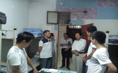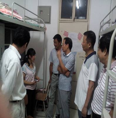 在学生会干部的陪同下,老师们挨个敲开了新生的宿舍门,询问新生这几天的生活情况,并亲切的嘱咐新生们在外出熟悉环境的时候注意安全。对于紧接着的军训,老师们希望新生能够认真训练,用这次军训的机会来锻炼自己,让自己尽快的适应独立的大学环境。在对女生宿舍检查慰问时,老师们询问了女生对新环境的适应情况,希望女生们都能用最短的时间适应新环境,享受大学的美好时光。最后,老师嘱咐同学们,天气渐冷要注意饮食穿衣。