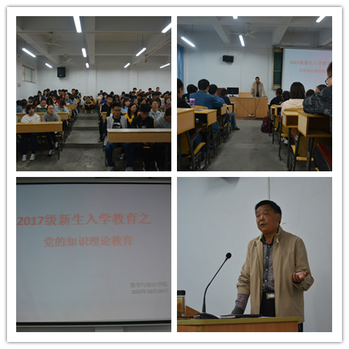 为加强大学生对党的基础知识的认识,同时进一步了解入党的流程和注意事项,2017年10月24日下午四点10分在1510教室开展了2017级新生入学教育之党的知识理论教育讲座。由我院办公室主任、学生党支部书记马老师讲解。