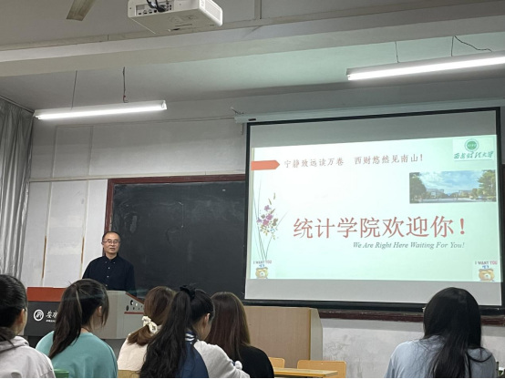 宣讲会上,高振斌首先介绍了西安财经大学统计学院的基本情况,主要包括学院的科研现状、培训基地和导师队伍构成等;其次对统计学院的硕士点专业方向以及相对应的考试科目、参考书目进行了讲解;最后对西安财经大学的校园环境、奖助政策、文体活动等进行了介绍。