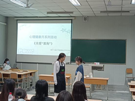 为不断加强心理健康教育,广泛普及心理健康知识,帮助学生在人格与学问、理智与情感、身与心各方面全面发展,4月27日,数统学院在1014室开展“三个一”心理健康知识普及教育活动,即参演一部心理情景剧、观看一个抑郁症相关知识教育视频、参与一次小组讨论,各班心理委员和学生代表参加了活动。