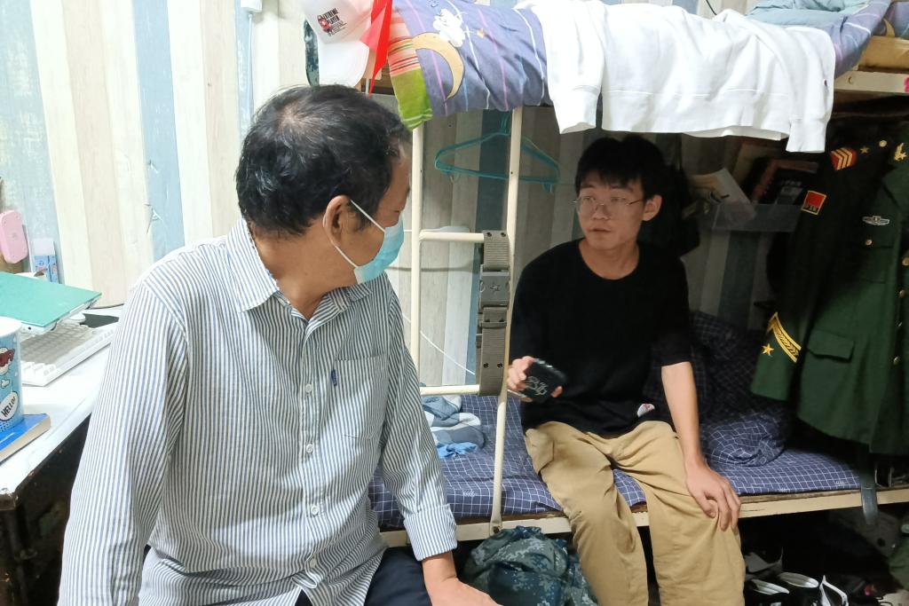 2022年10月2日晚,数学与统计学院党总支书记郭全寿带领辅导员走进学生宿舍,开展国庆节期间宿舍走访。