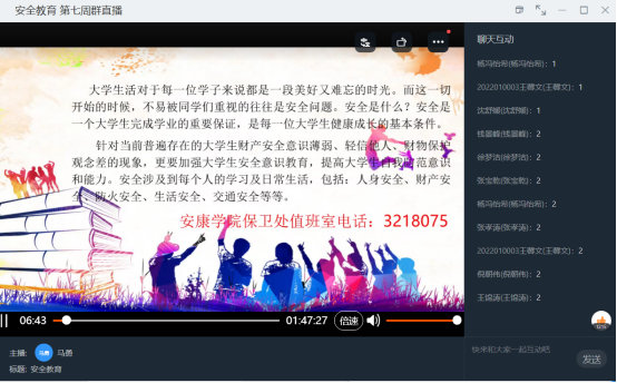 10月11日至11月1日,数统学院分班级、分批次以线上线下结合的方式为2022级新生开展大学生安全教育,由各班辅导员老师带领开展学习。