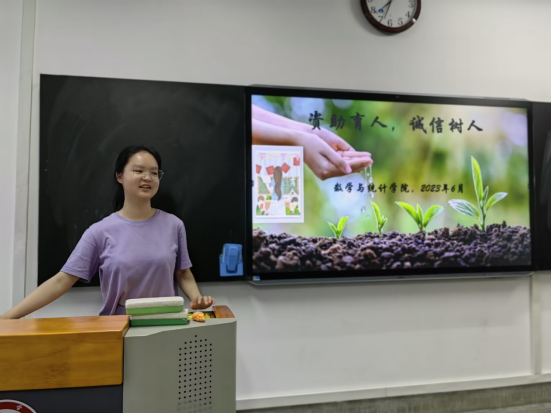 为培养学生自立自强、诚实守信、知恩感恩、勇于担当的良好品质,促使同学们努力学习、报效祖国,数统学院围绕宣传资助政策、进行诚信感恩教育、丰富资助育人载体、创建资助育人品牌等方面开展资助育人工作。