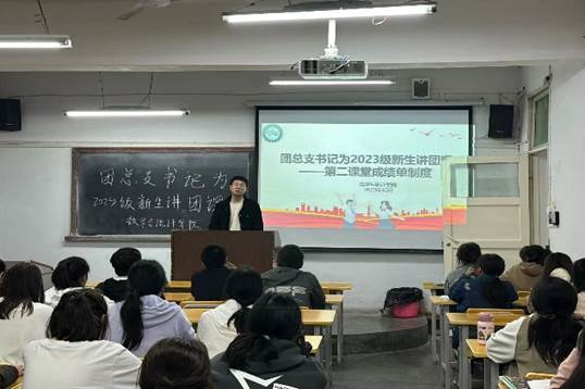 “第二课堂成绩单”制度,旨在鼓励学生参与各类课外活动,提升他们的综合素质和社会责任感。为了让2023级新生对第二课堂成绩单制度有更深入地了解,2023年10月30日晚上七点,数统学院团总支书记马勇为同学们讲解了“第二课堂成绩单制度”主题团课。