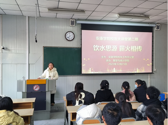 2023年12月21日,校友大讲堂第二期暨数统学院数跃大讲堂第十二讲在江南校区1022室举办。本期由数统学院2022届数学与应用数学专业毕业生董奕驰主讲,数统学院120余名学生参加,招就处校友工作科科长张远秀出席讲座,数统学院学工办主任董婷瑜主持。
