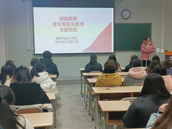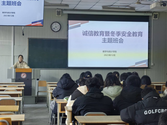 为增强学生安全防范意识,进一步营造积极向上的学风,端正考风考纪,2023年12月24日至25日,数统学院各班召开了诚信考试暨冬季安全教育主题班会。