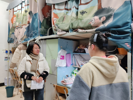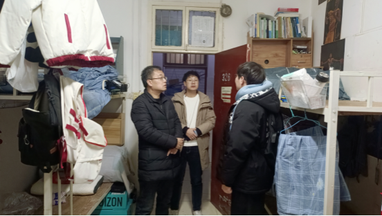 杨高翔带队逐一查看宿舍安全卫生情况,仔细排查安全隐患,并询问了仍在校学生的返乡计划,提醒同学们注意人身财产安全、宿舍用电安全和出行安全,寒假离校前关好门窗、水电,打扫宿舍卫生,妥善保管好个人贵重物品。