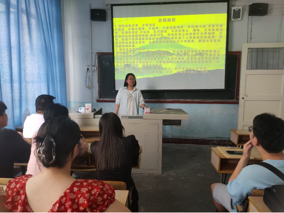 在文明离校教育环节,辅导员提倡大家加强自我约束,不酗酒、不聚众闹事、不大声喧哗、不乱扔物品、不违规用电,离开宿舍前清理宿舍垃圾,以实际行动展现毕业生的良好精神风貌。提醒同学们提高安全防范意识,谨防电信诈骗,离校注意安全,未就业学生积极就业的同时提高辨别能力和安全防范意识。最后希望同学们在新的人生征程继续努力,做一个有信念、有原则的人,不为一时一事所惑、不为风险所惧,勇敢面对挫折困难,带着感恩之心在不同的坐标发光发亮。