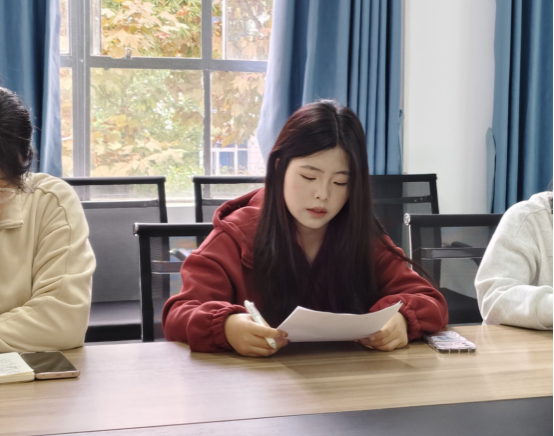 董婷瑜向同学们介绍了本次座谈会的目的。学生代表们从课堂教学、第二课堂活动、专业实践、职业规划等方面进行了交流。参会学生代表认为学院专业教师认真严谨,学校和学院的第二课堂各类活动、比赛竞赛内容丰富、选择空间大,学生各方面能力都得到了很大的提升。同时,结合所处年级和专业特点提出了合理性建议。与会老师听取了学生代表发言,对同学们提出的疑惑进行了详细解读,就提出的相关建议进行讨论交流、记录梳理。