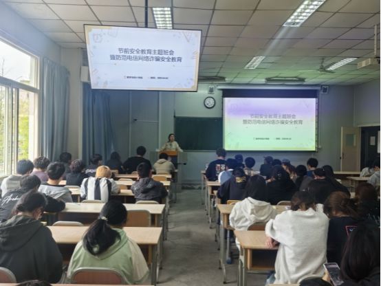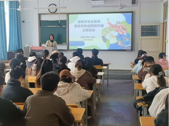 为强化学生安全意识,保障清明节假期安全,2024年4月2日至3日数学与统计学院辅导员组织各班召开清明节前安全教育暨防范校园电信网络诈骗主题班会。