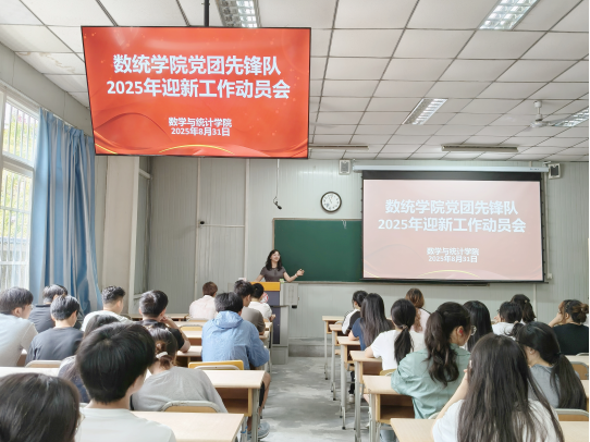 新学期伊始,为全面做好2025年迎新各项工作,确保新生顺利、有序、温馨入学,数学与统计学院于831日召开迎新工作动员会。会议由学院学工办主任、2025级新生辅导员邹珊主持全体学生党员、入党积极分子、发展对象、学生干部等组成的党团先锋队参加会议。