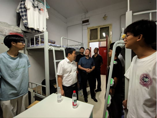 92日下午,在2025新生报到结束后,学院党总支书记储玖琳、院长成波、副院长杨高翔、副院长徐龙华带领全体辅导员深入学生宿舍,亲切看望刚刚入学的2025新生以及部分高年级学生,为他们送去学院的关怀与温暖。