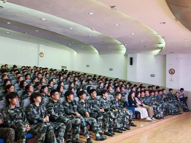 2025年9月3日,我院大一新生迎来了大学生活的第一课——军训,恰逢纪念中国人民抗日战争暨世界反法西斯战争胜利80周年,上午9时许,新生们身着整齐的军训服,精神抖擞地坐在1号教学楼的学术报告厅,共同观看了九三阅兵直播。当一个个方队迈着整齐划一的步伐通过天安门广场时,同学们的目光中充满了敬佩与自豪。“看到阅兵式上军人挺拔的身姿、坚定的步伐,我内心非常激动,他们展现出的那种纪律性和使命感让我深受鼓舞,我也希望自己能在军训中锻炼出坚韧的意志。” 新生李同学激动地说。