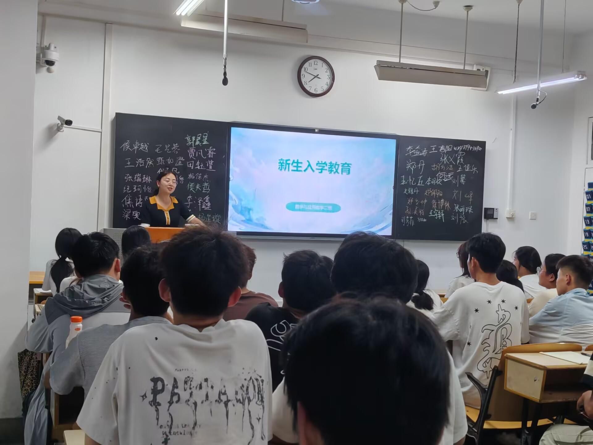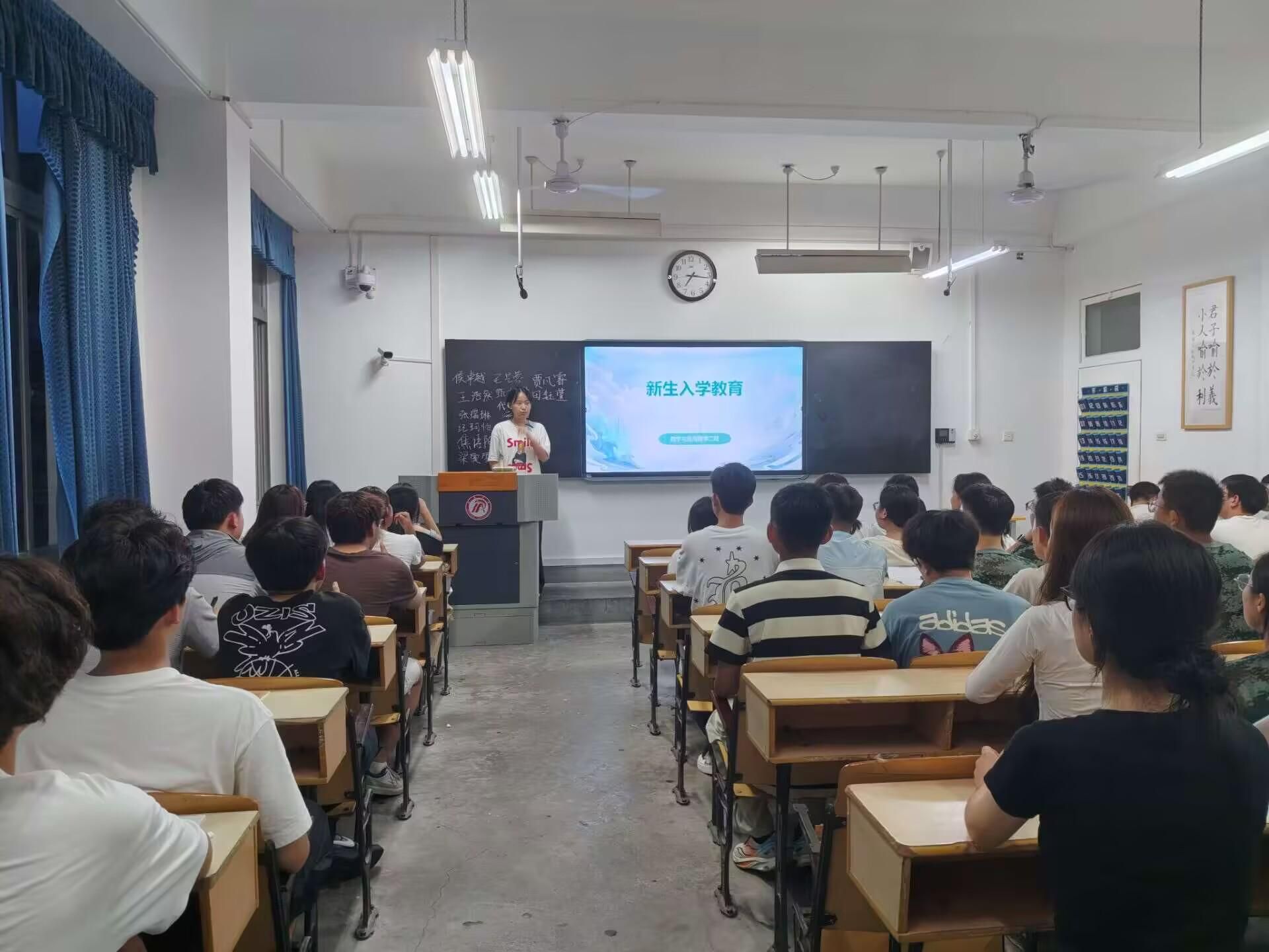 随后,新生辅导员邹为同学们带来了入学“第一课”。邹围绕“适应、成长、规划”三个主题,细致地讲解了大学的学习特点、生活模式以及未来可能面临的机遇与挑战。她重点强调了安全意识、纪律观念和集体荣誉感,希望同学们能尽快适应新环境,学会自我管理,合理规划大学生活,亲切的话语和实用的建议让同学们感受到了学院的温暖与关怀。