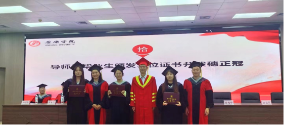 典礼在庄严的国歌声中拉开帷幕院长成波,回顾了过去年学生们在各个方面取得的成就,对他们即将步入社会表示衷心的祝贺,并寄予了深厚的期望。副院长徐龙华宣读《数学与统计学院学士学位授予名单》。副院长杨高翔宣读《数学与统计学院优秀毕业生获奖名单》,导师们为获奖学生颁发了证书。