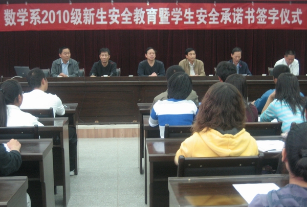 数学系举行2010级新生安全教育及学生安全承诺书签字仪式
