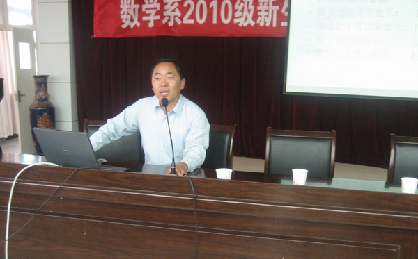 10月11日下午,数学系在图书馆六楼报告厅举行了2010级新生安全教育及学生安全承诺书签字仪式。参加会议的有数学系主任赵临龙,保卫处处长高立平,党总支书记李延福、副主任王昭海,保卫处副处长王开忠,学工办主任马新华及2010级全体新生参加了此次会议。会议由学工部部长郑树青主持。