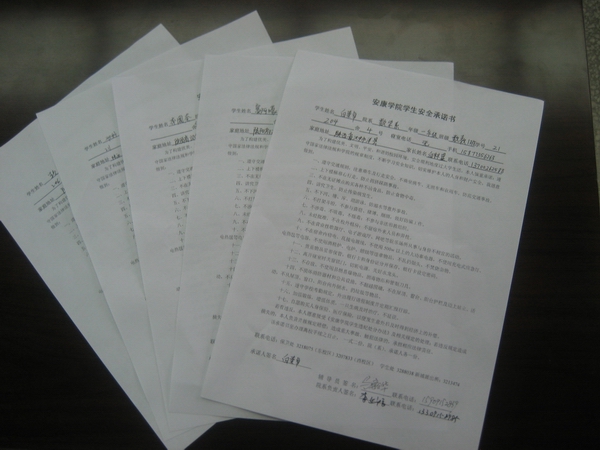 会上,高立平宣读了《安康学院学生安全承诺书》;系党总支书记李延福和学工办主任马新华分别与2010级数学与应用数学班(应用方向)班长邢科、数学与应用数学班(师范方向)班长李圆奎、统计学班班长窦阿朦、专升本班班长王文、数学教育班班长白秦卓签订了《安康学院学生安全承诺书》;学工部部长郑树青希望学生不断提高安全意识,遵守承诺,言行一致,从小事做起,防患于未然。最后王开忠从防骗、防火、防爆、防盗、纠纷、赌博、传销、抢劫、交际、择业、心理健康等大学生中常见的不安全现象及其预防措施等方面进行了进行了安全教育。
